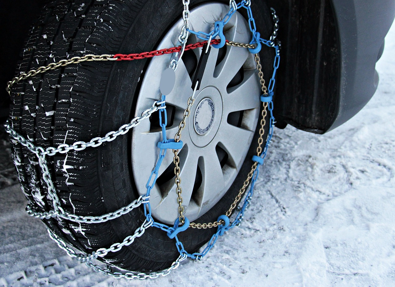 폭설 지역을 주행할 경우 스노우 체인을 차량에 보관하세요. 체인은 바퀴에 단단히 고정해 미끄럼을 방지합니다.