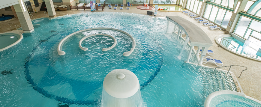 아쿠아틱 스파존 : 따뜻한 물속에서 피로를 풀며 몸을 이완할 수 있는 다양한 스파 시설이 준비되어 있습니다.