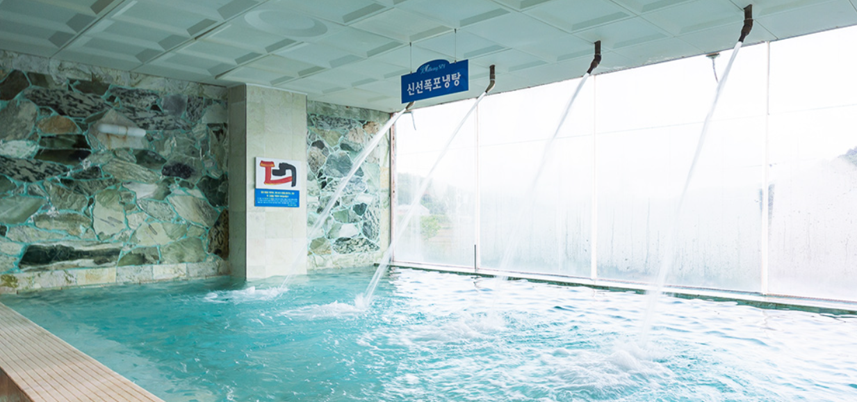 천연 온천수의 효능 : 미네랄이 풍부한 약알칼리성 온천수는 피부를 매끄럽게 하고, 피로 해소와 혈액순환 촉진, 관절 통증 완화 등에 효과적입니다.