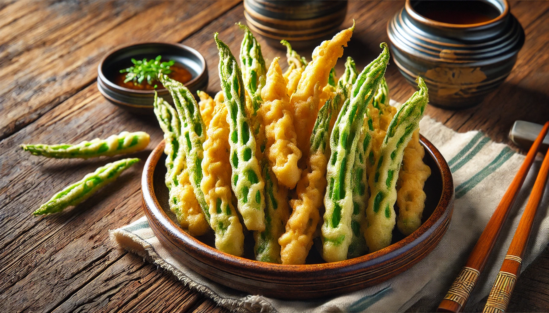 - 튀기기: 두릅을 반죽에 묻힌 후 170℃로 예열한 기름에 넣어 노릇하게 튀깁니다.