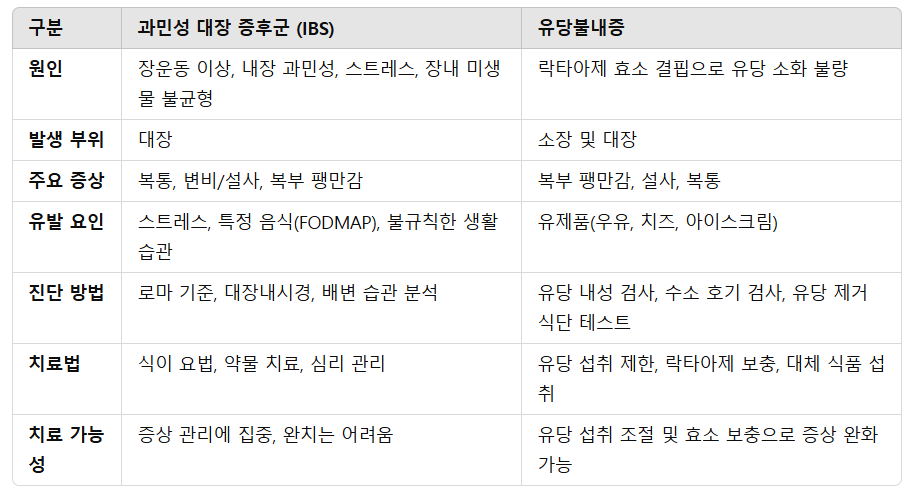 과민성 대장 증후군(IBS) 와 유당불내증의 차이점