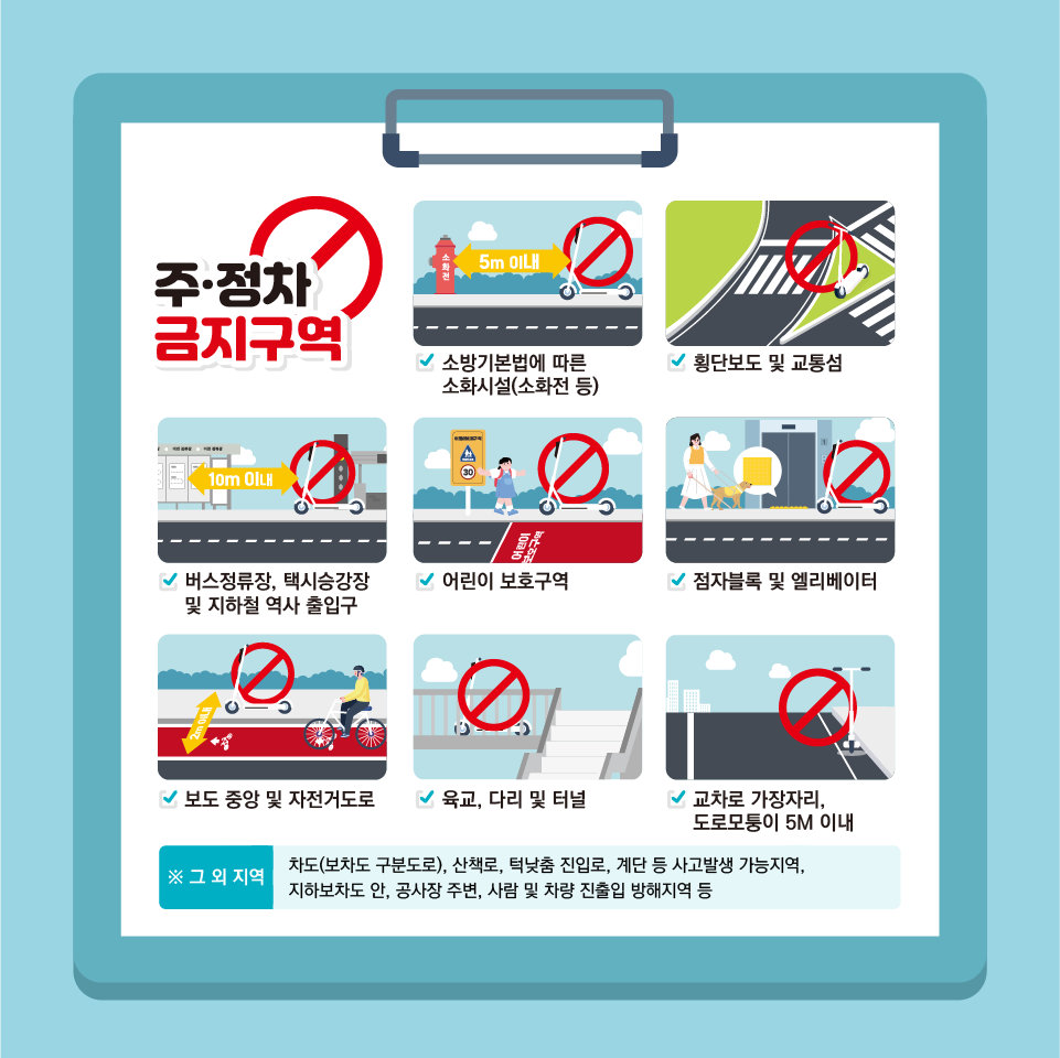 공유킥보드 이용자는 다음 장소에 주차하면 안 됩니다!