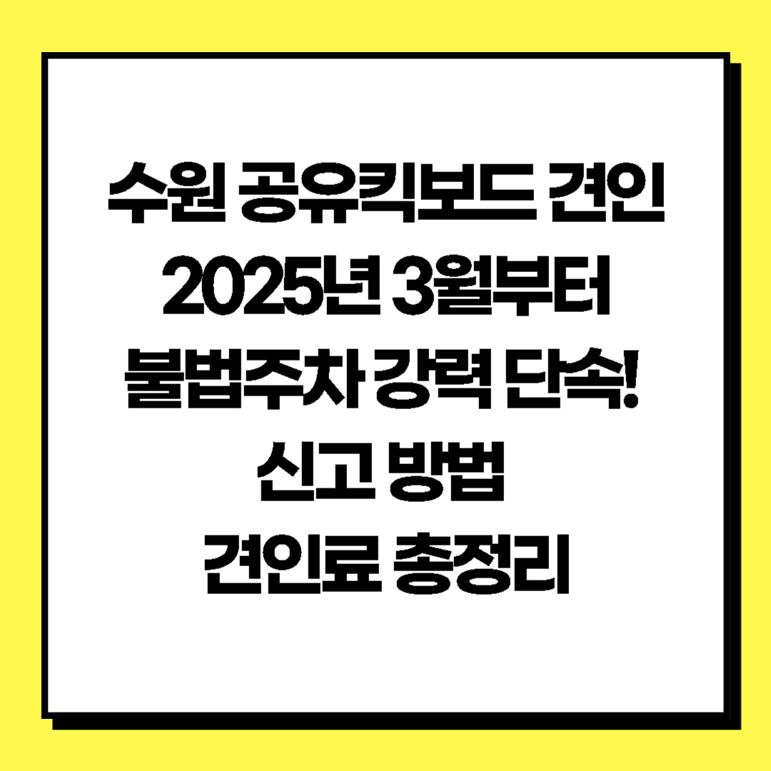 공유킥보드를 이용하는 사람들이 많아지면서 불법 주차 문제가 심각해지고 있어요. 수원특례시에서는 2025년 3월부터 공유킥보드 불법주차 견인 조치를 시행합니다! 불법주차 견인료는 3만 원, 신고 접수 후 3시간 내 미정비 시 견인 조치되니 주의하세요. 이번 단속 내용, 견인료, 신고 방법, 주차 가능 구역까지! 모든 정보를 한눈에 정리해 드릴게요.