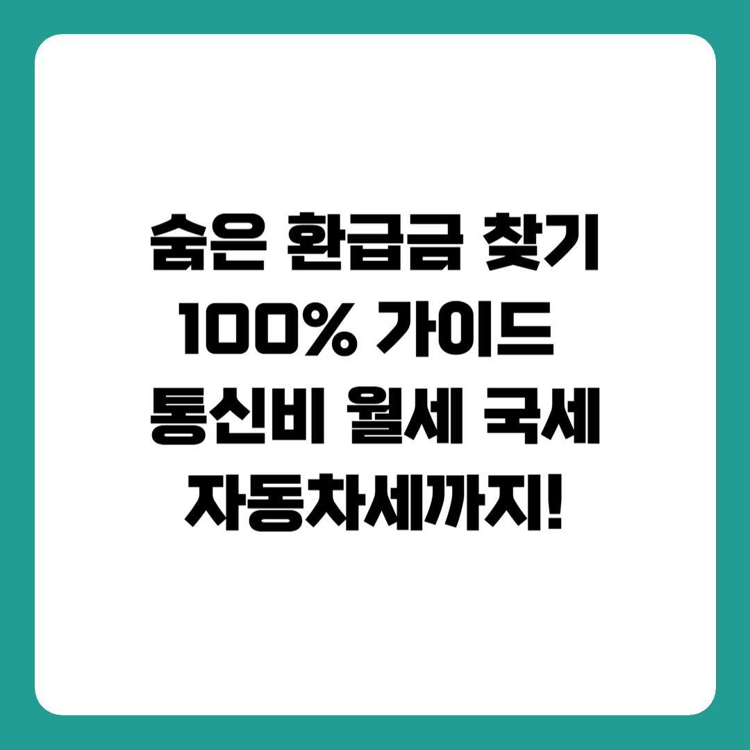 숨은 환급금 찾기 100% 가이드 : 통신비, 월세, 국세, 자동차세까지!