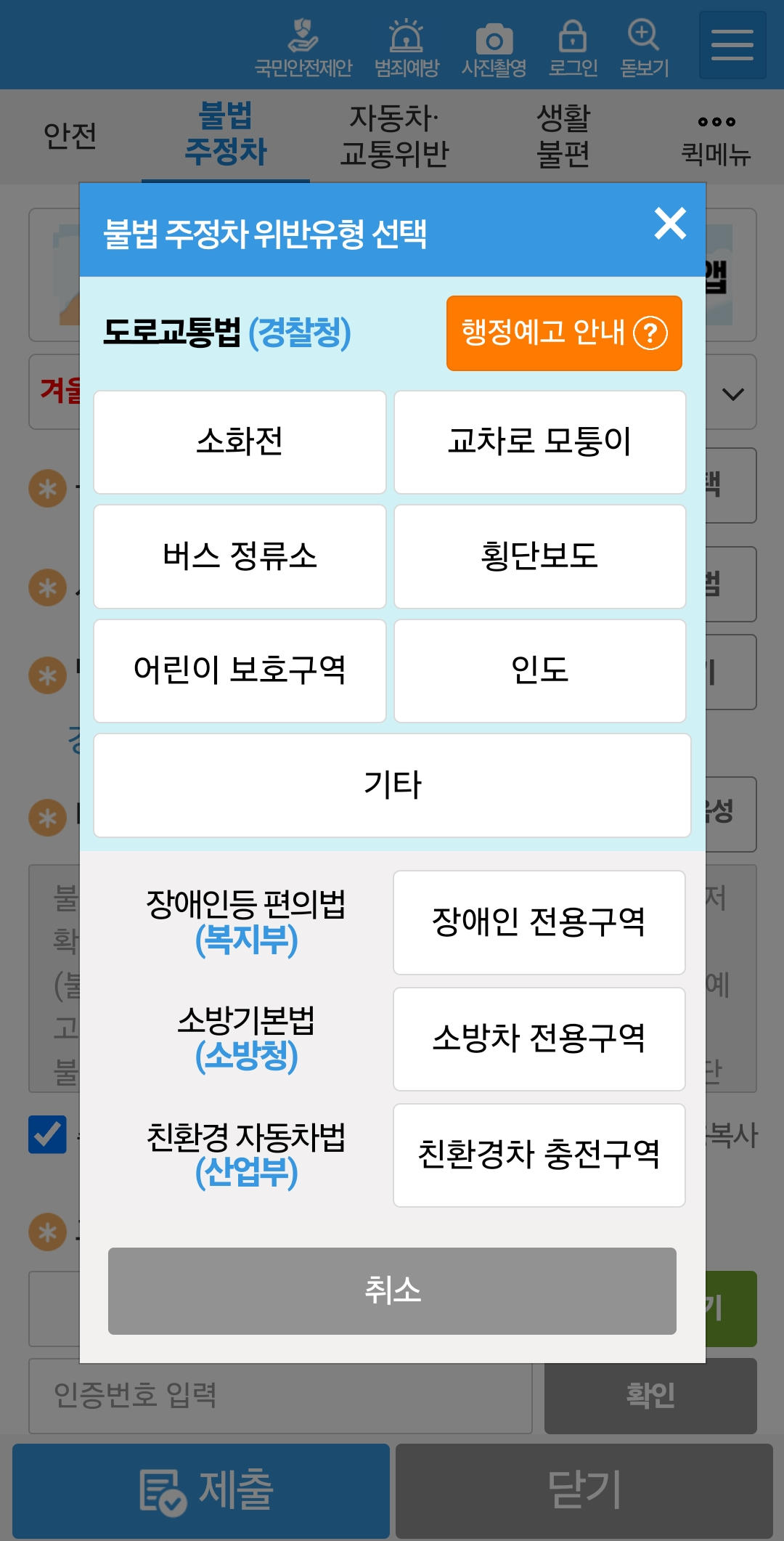 - 위반 유형 선택: