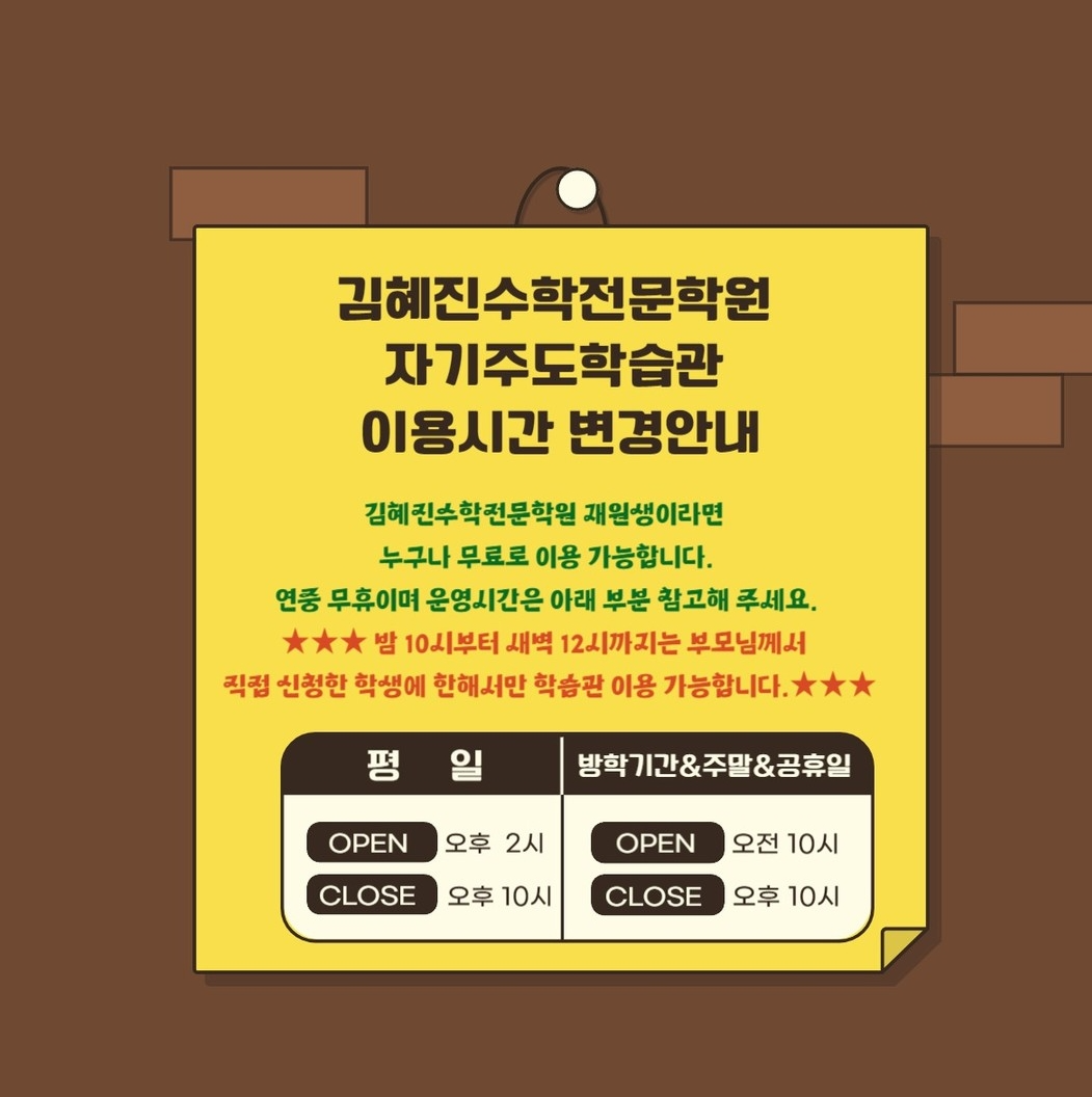 오픈시간 : 자세한 시간은 학원에 문의