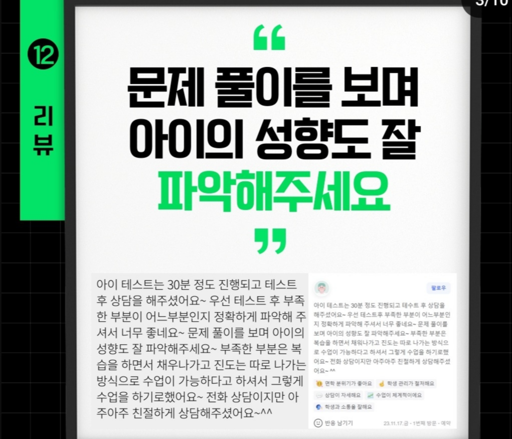 리뷰가 인정해주는 김혜진수학전문학원