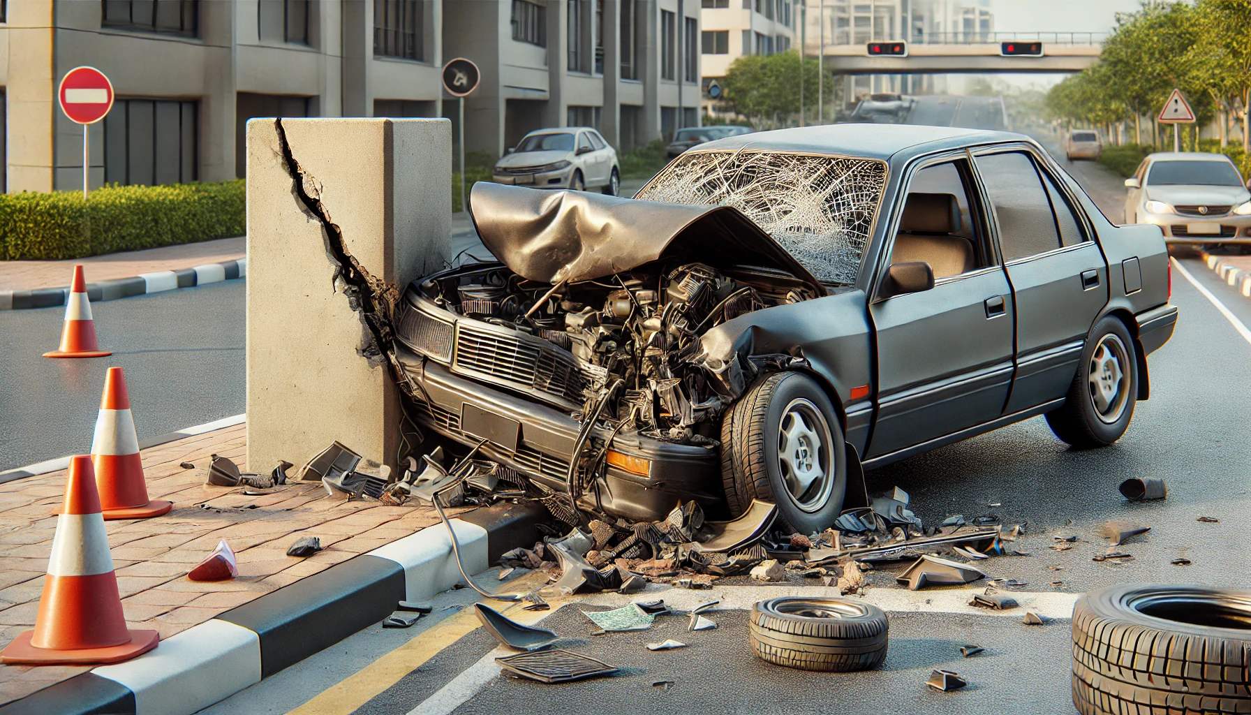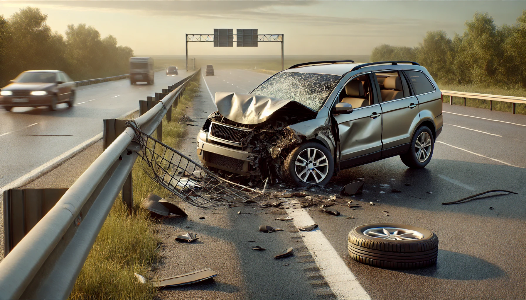 단독 사고 : 벽, 가드레일, 기둥 등 도로 시설물과의 충돌.