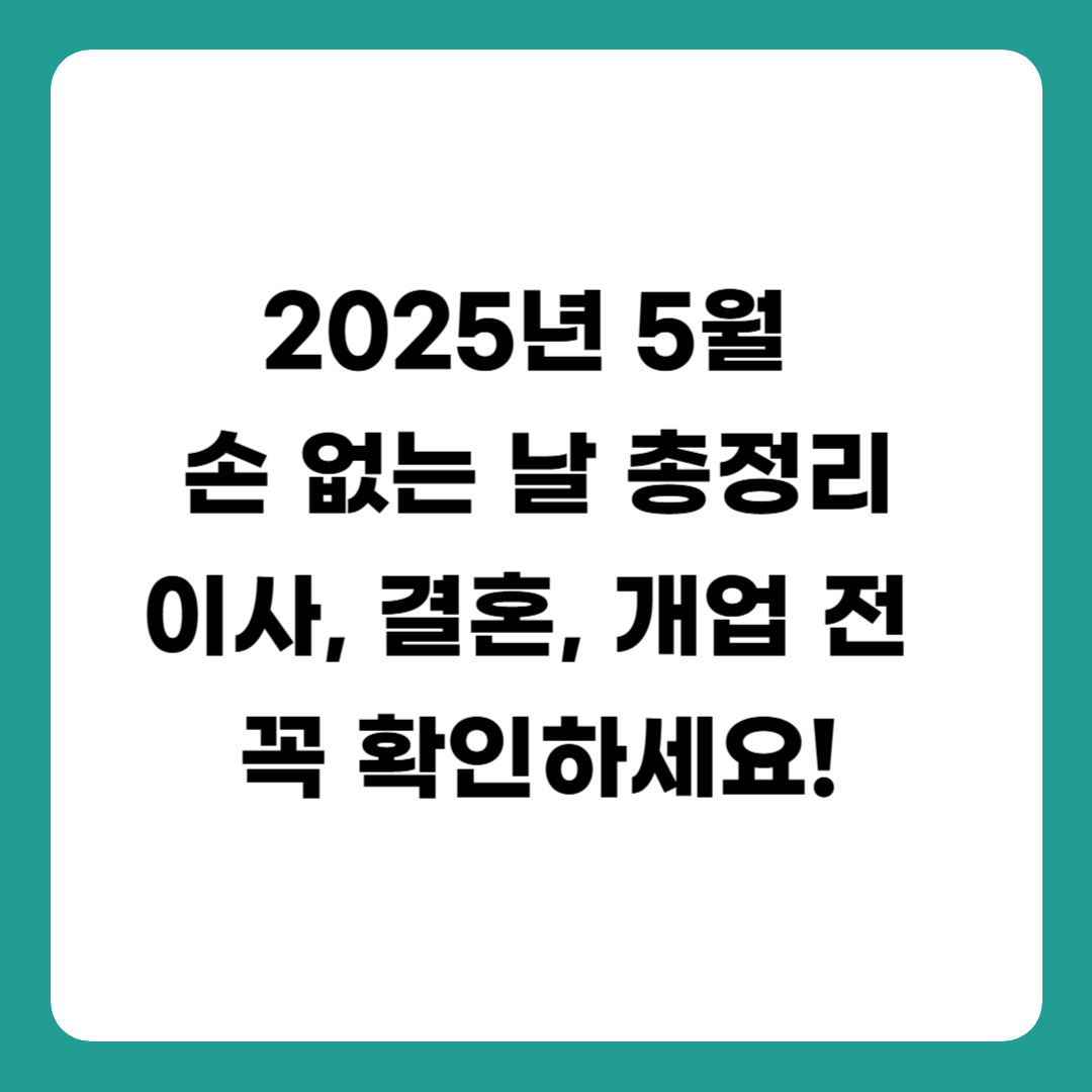 2025년 5월 손 없는 날을 미리 체크하고, 이사, 결혼, 개업 등 인생의 중요한 이벤트를 더욱 순조롭고 안정감 있게 준비해보세요!